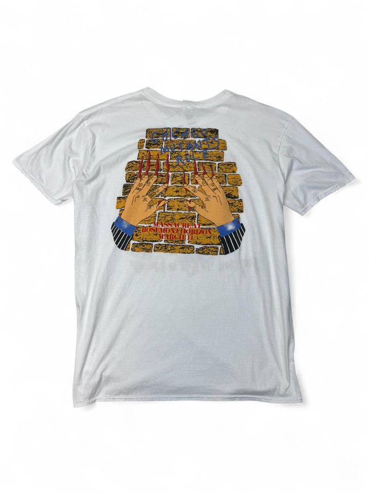 Showcasing the legendary band’s bold graphics, this rare white Iron Maiden shirt in XL exudes vintage charm and rock nostalgia. Perfect for collectors and fans alike, it adds edgy style and authentic band history to any wardrobe.